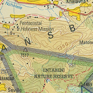 Topografische Detailkaart van de Oostelijke Kaap met duidelijke hoogteverschillen. Beslaat de districten Umtata, Tsolo, Libode, Ngqeleni, Lusikisiki Umzimvubu, grotendeels Mqanduli en deels aanliggende districten.