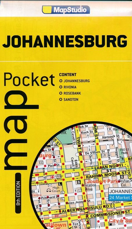 Handige stadsplattegrond van Johannesburg in pocket formaat. De verre buitenwijken staan er niet op, maar de binnenstad en de belangrijkste wijken vind je er wel op terug. Met register.