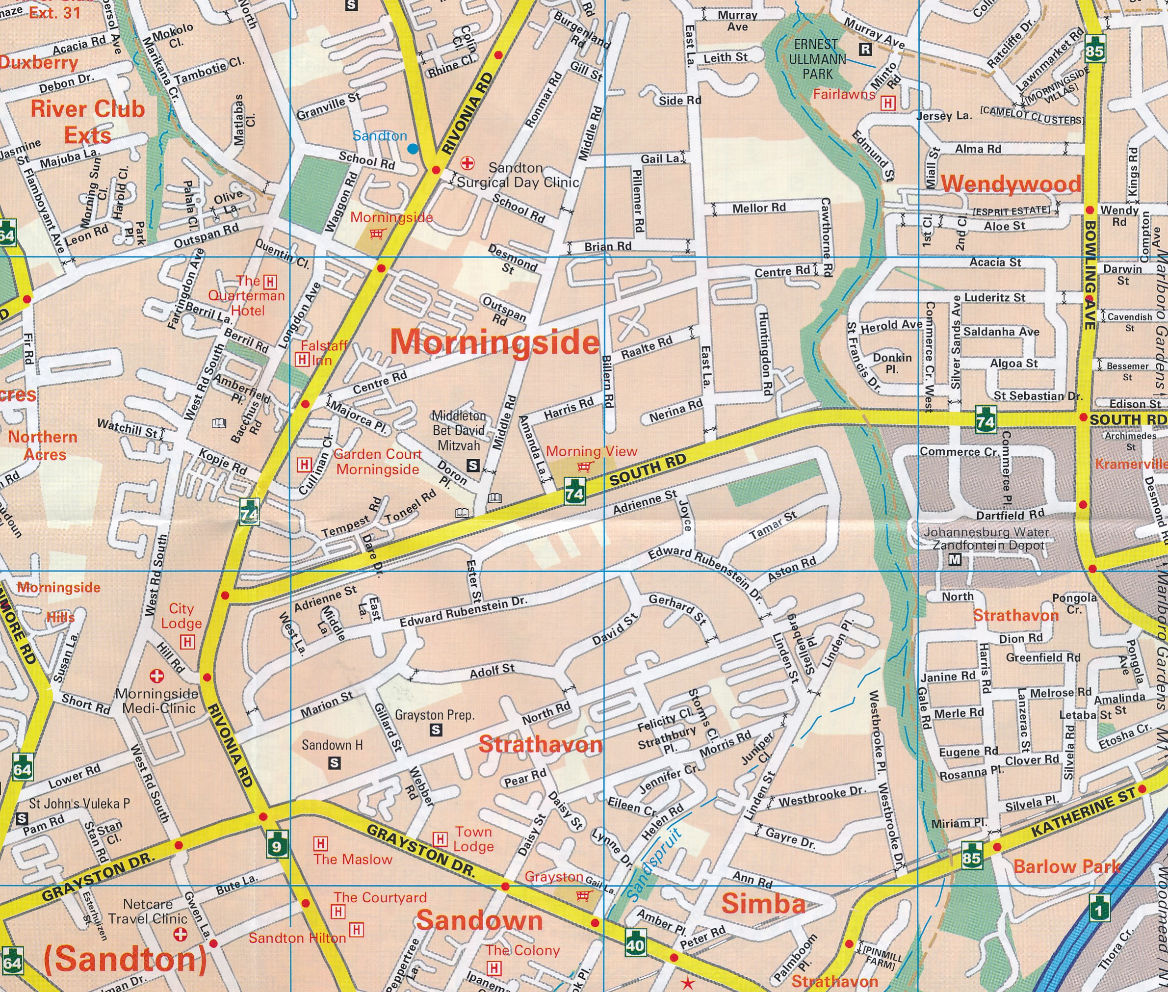 The detailed maps cover Johannesburg, Rivonia, Sandton and Rosebank areas.