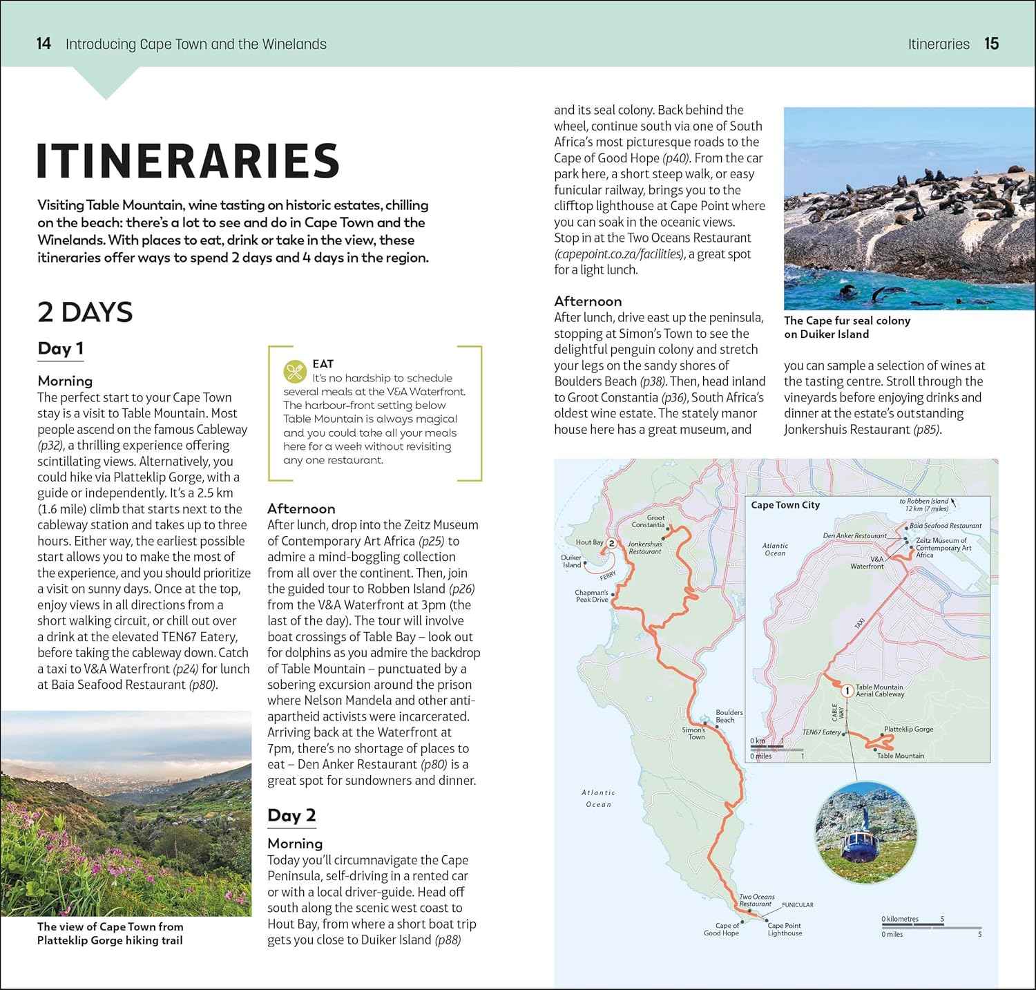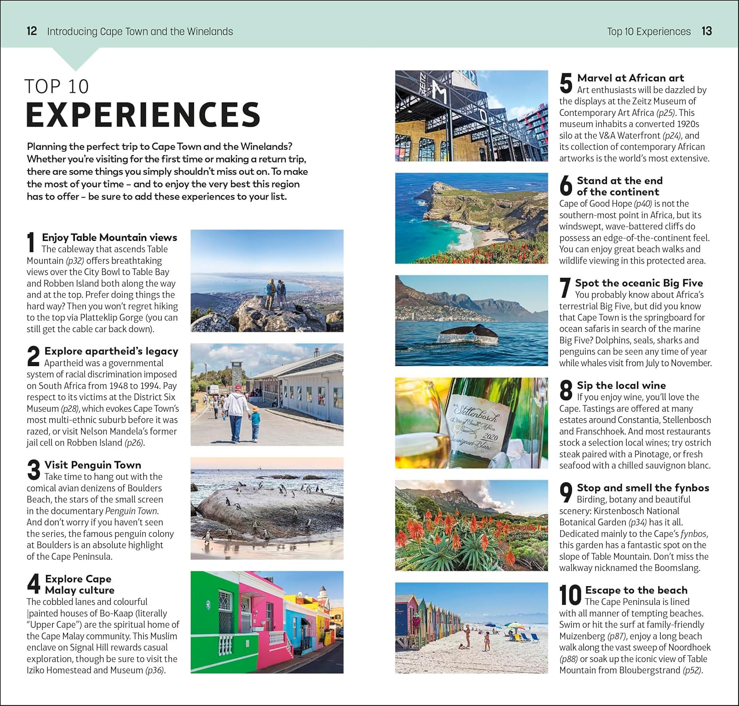 Enjoy a thrilling aerial ascent in Table Mountain's cableway, sample fine vintages in centuries old wine estates, take in the view from the Cape of Good Hope or wander the V&A Waterfront. From Top 10 wildlife experiences to the Top 10 viewpoints - discover the best of Cape Town and the Winelands with this easy-to-use travel guide.Inside Top 10 Cape Town and the Winelands:
