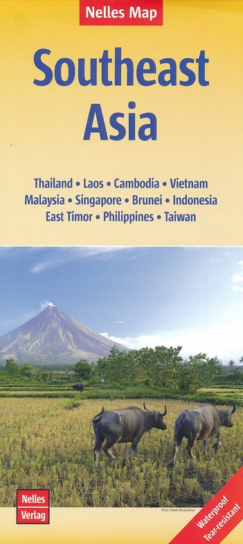 South East Asia at 1:4,500,000 from Nelles Verlag, with its smaller size, double-sided map offering a convenient format for use when travelling. The map divides the region north/south, with coverage on the northern side including the Philippines and Taiwan. On the reverse is the whole of Malaysia and Indonesia.