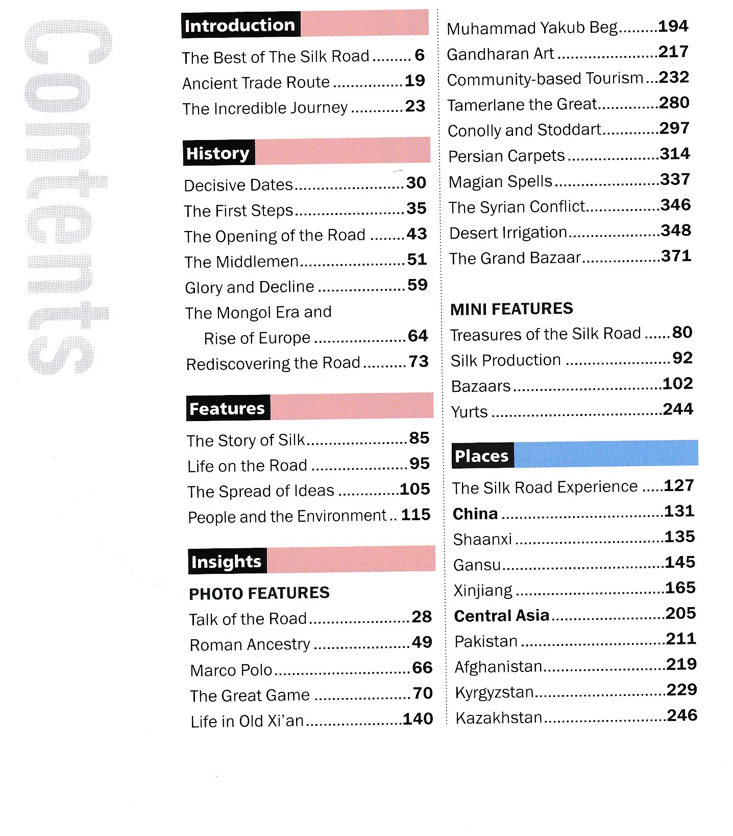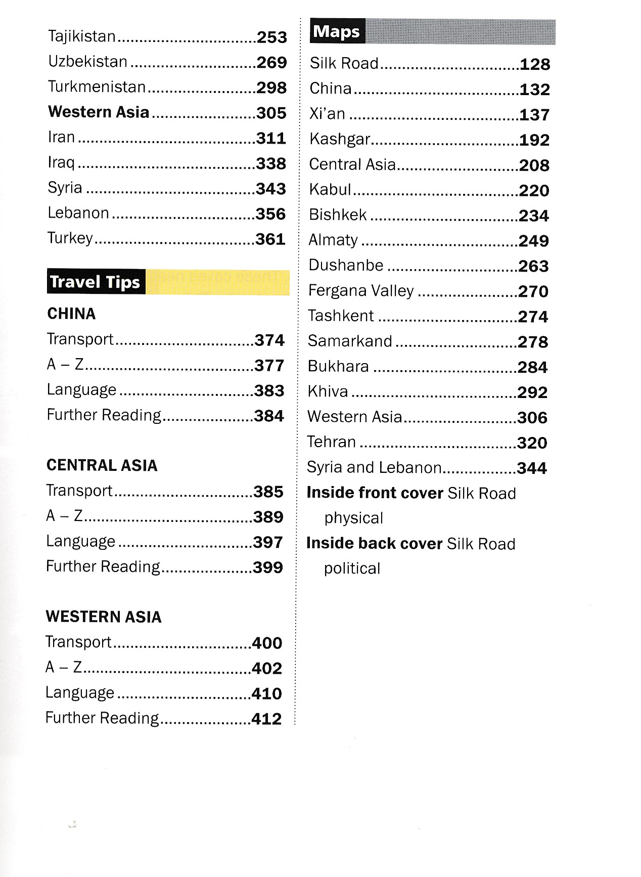 - Colour-coded chapters - each place chapter has its own colour assigned to aid easy navigation of this Silk Road travel guide