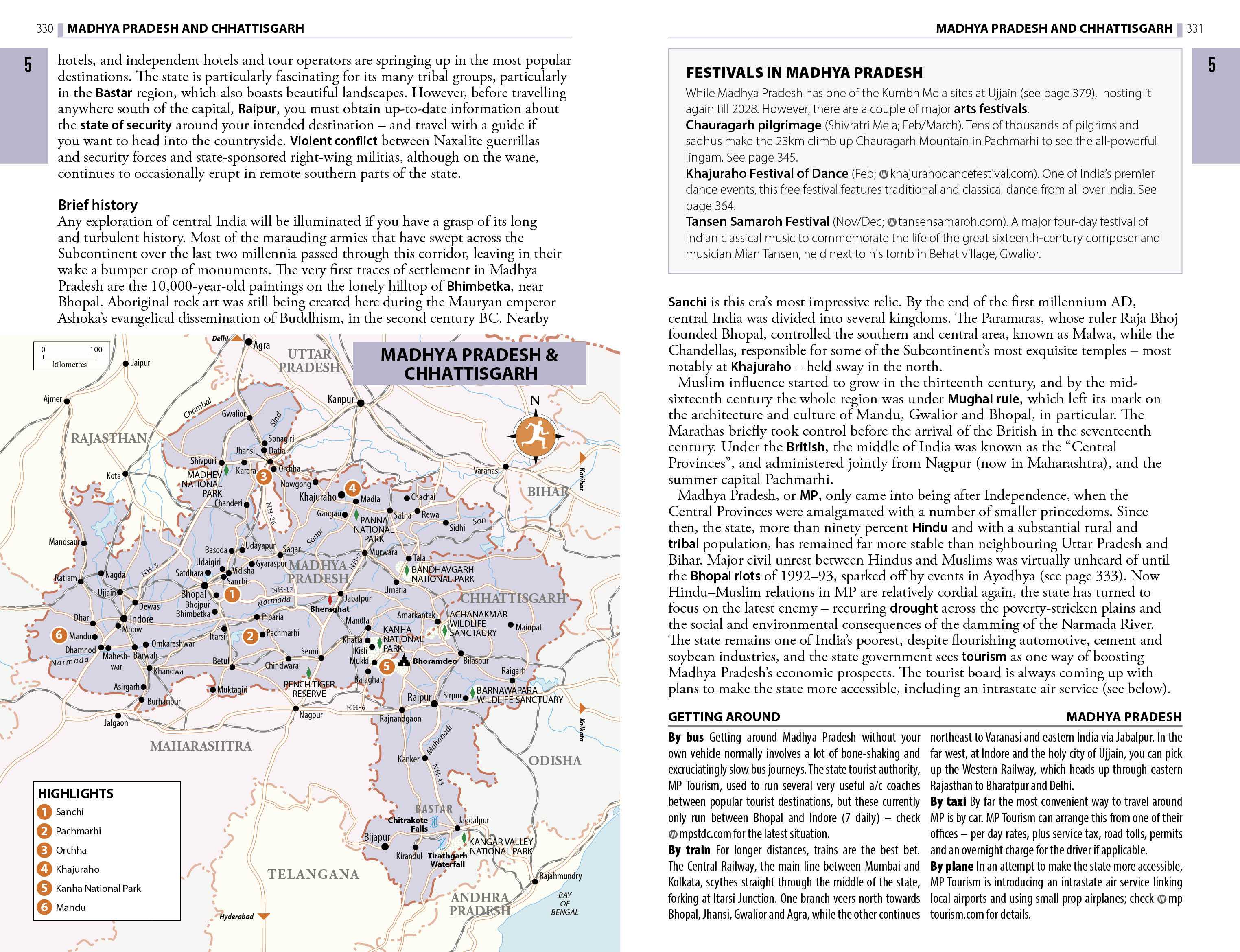 The Rough Guide to India covers: Delhi, Rajasthan, Uttar Pradesh, Uttarakhand, Madhya Pradesh and Chhattisgarh, Himachal Pradesh, Jammu and Kashmir, Punjab and Haryana, Gujarat, Mumbai, Maharashtra, Goa, Kolkata and West Bengal, Bihar and Jharkhand, Sikkim, the Northeast, Odisha, Andhra Pradesh and Telangana, the Andaman Islands, Tamil Nadu, Kerala, and Karnataka.