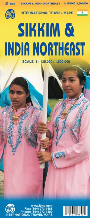 Sikkim is an autonomous state between India and Chinese-controlled Tibet, much as Bhutan. It is a wonderful, mountainous country to visit, with reasonably good goads going far to the north, well into the Himalayas, and interesting temples/pagodas to see, as well as the fabulous Fam Rong Lho Wildlife Sanctuary. As anyone visiting this remote state needs to pass through the northeastern area of India to reach Sikkim, we have include a complete, detailed map of Bengal, Bihar, Meghalaya, and the Assam states as well as of the portion of Nepal abutting Sikkim, and an inset map of Kolkata. The map starts at Kolkata and extends to the Tibetan border, and from Patna in the west to the border with Burma – a lovely area of coverage – value added.