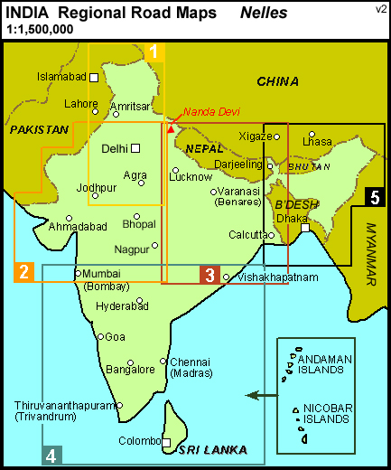 Goede kaart van een deel van India. Aan beide kanten bedrukt. Met veel toeristische aanduidingen als nationale parken en culturele bezienswaardigheden. Prima leesbare kaart.