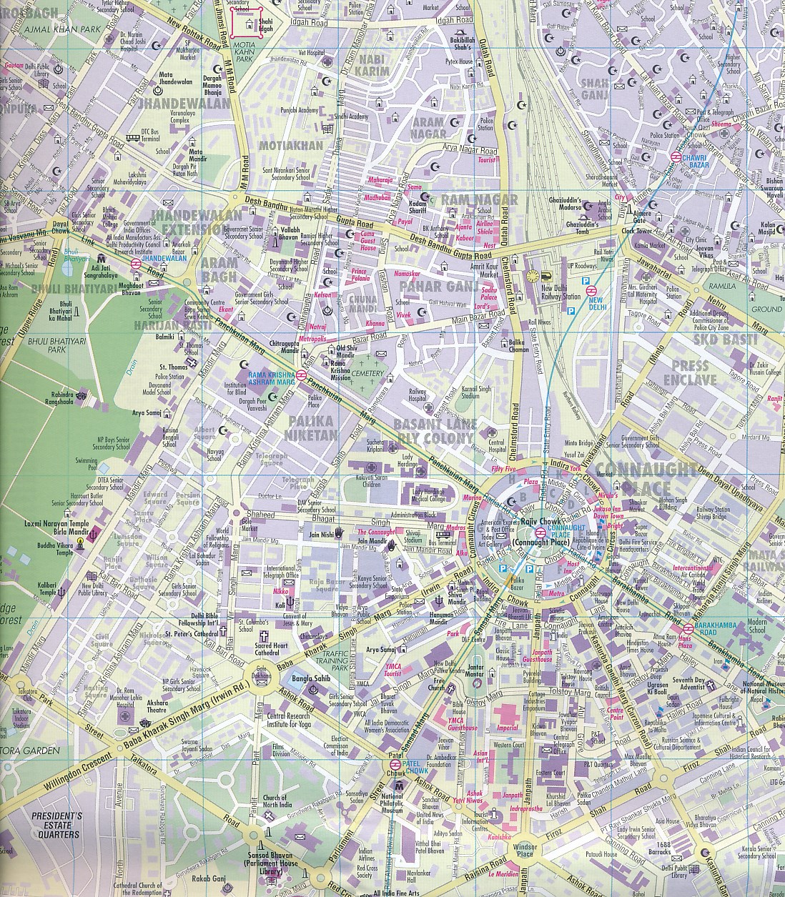 Wegenkaart van een deel van India. Met register, een grote overzichtskaart en een aantal kleinere plattegronden van de centra van bepaalde steden.