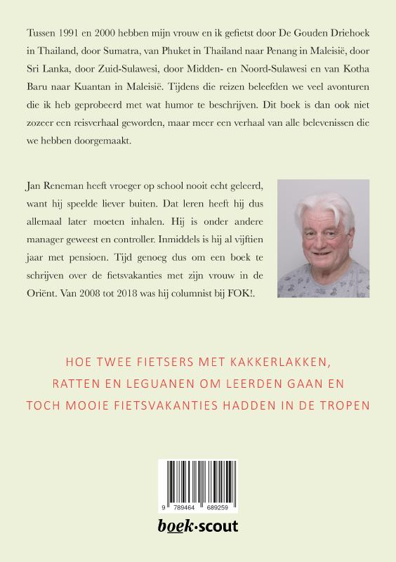 Tussen 1991 en 2000 hebben mijn vrouw en ik gefietst door De Gouden Driehoek in Thailand, door Sumatra, van Phuket in Thailand naar Penang in Maleisië, door Sri Lanka, door Zuid-Sulawesi, door Midden- en Noord-Sulawesi en van Kotha Baru naar Kuantan in Maleisië. Tijdens die reizen beleefden we veel avonturen die ik heb geprobeerd met wat humor te beschrijven. Dit boek is dan ook niet zozeer een reisverhaal geworden, maar meer een verhaal van alle belevenissen die we hebben doorgemaakt.Reviews