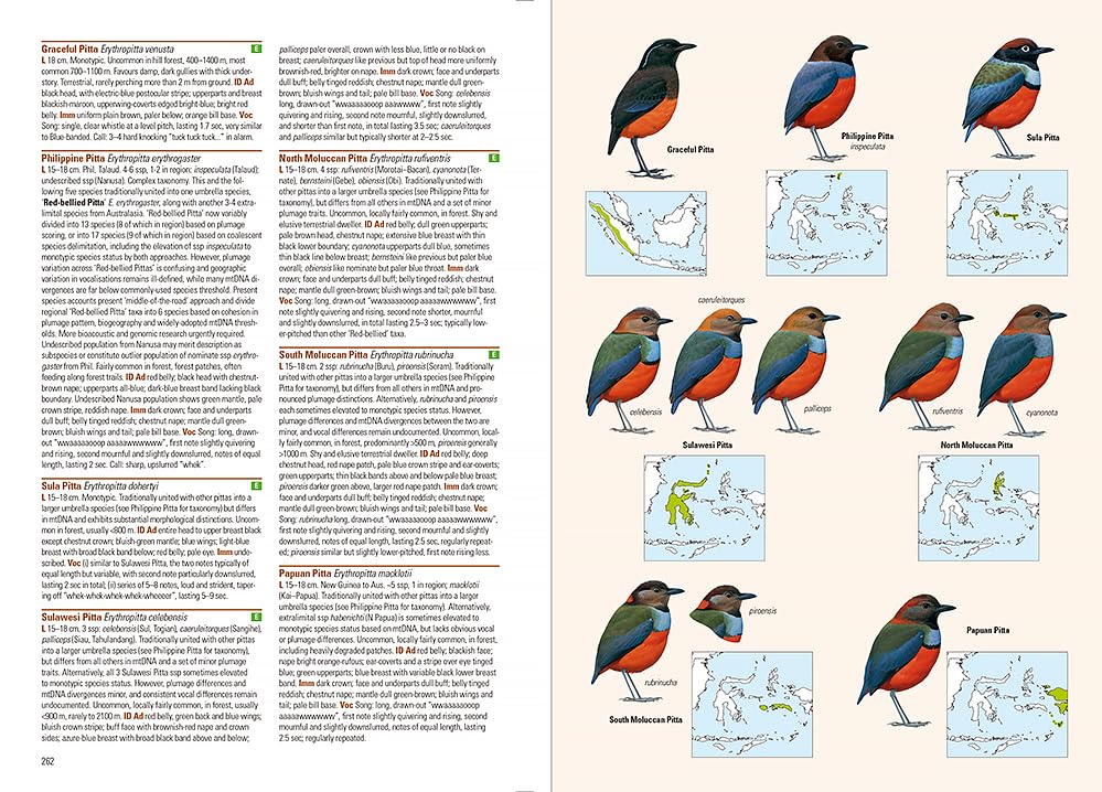 Detailed texts covering status, taxonomy, habitat and behaviour, all plumage variations, vocalisations, and similar species.