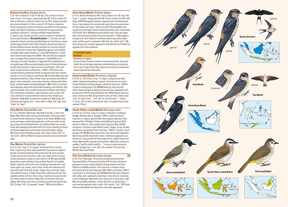 The first ornithological field guide covering the vast chain of the Indonesian archipelago has been completely revised following years of meticulous research. This second edition now encompasses over 2,800 illustrations, including 325 entirely new figures and nearly 500 alterations to the original artwork, supplemented by 1,350 maps of all regularly occurring species. The species are mapped with improved accuracy by including three magnified geographical regions, or by a larger archipelago-wide map frame. The book describes all 1,456 bird species known to occur in the region, including 628 endemics, 106 vagrants, 4 introduced species and 10 species yet to be formally described. Together these represent over 13% of global bird diversity. Importantly, all subspecies are described in detail.