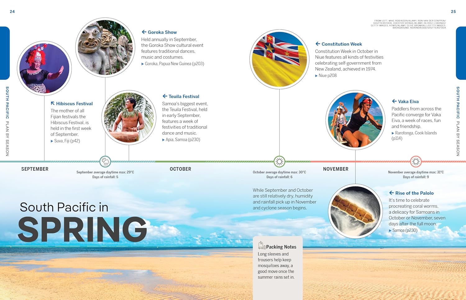 - Handy seasonal planning calendar guides you on where to go, when to travel, and what to pack