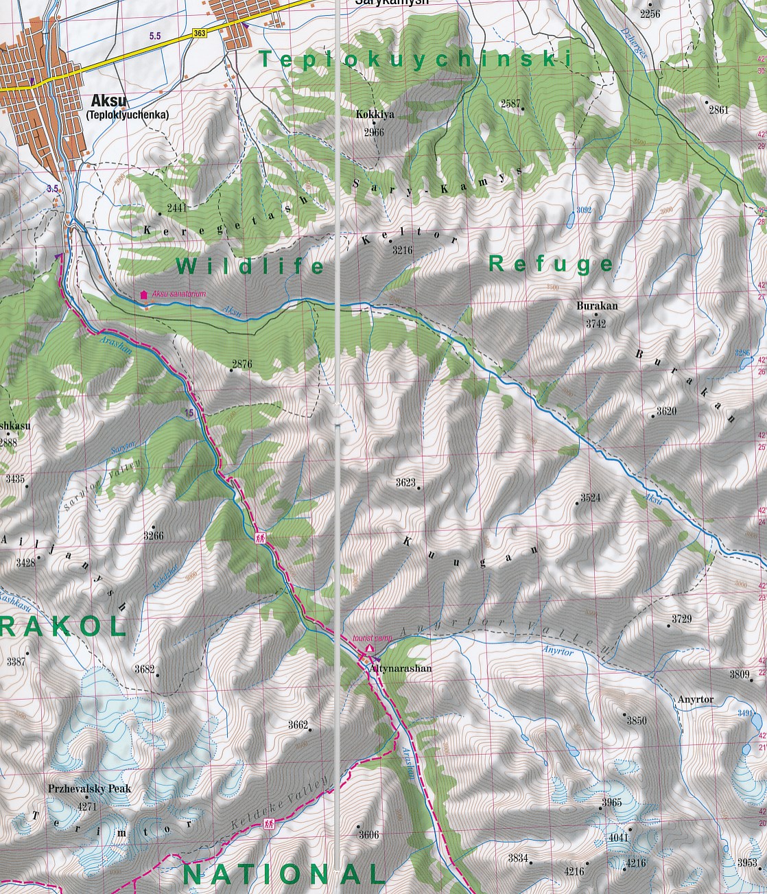 Wij hebben deze kaart in Nederland al besteld voor onze vakantie, waar we erg blij mee zijn. We zijn mensen in Karakol tegengekomen die nergens een kaart konden kopen. Het wandelgebied bij Karakol is duidelijk weergegeven op de kaart. Er staan meer routes op dan op kaarten van andere toeristen. Wij probeerden één van deze afwijkende routes te lopen maar uiteindelijk hebben we rechtsomkeert gemaakt omdat het pad niet meer te vinden was, en hebben we het 'standaard' rondje gelopen.