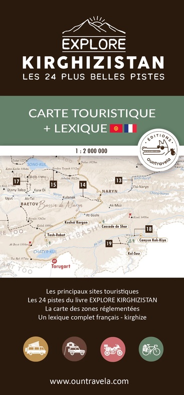 Wegenkaart - landkaart Kirghizistan Explore Carte Touristique & Lexique | Ountravela (9782491618049)
