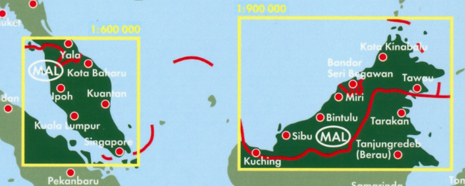 Mooie duidelijke kaart met het vasteland van Maleisie op een zeer aanvaardbare schaal van 1:900.000. Bijzonder geschikt om rond te reizen, al dan niet met een eigen vervoermiddel.