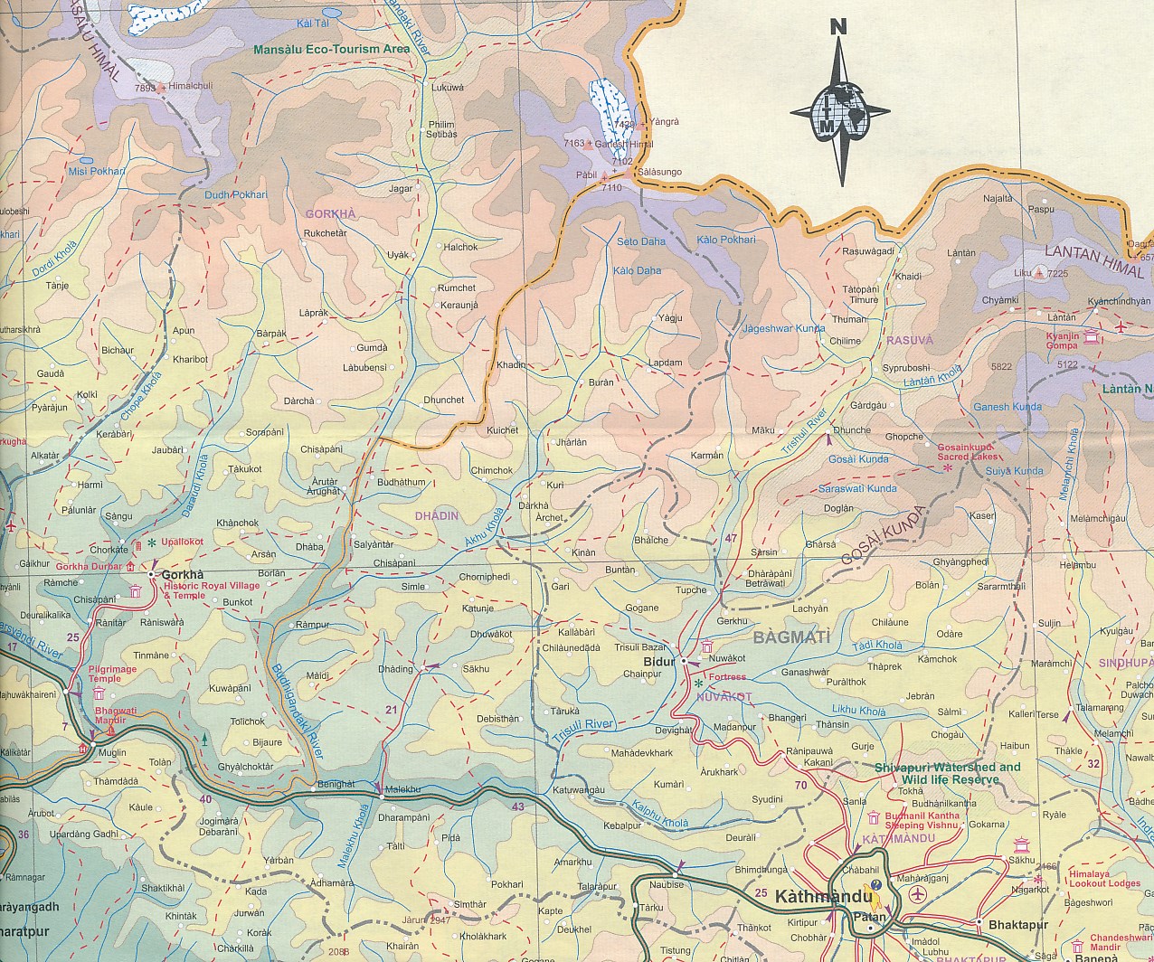 This is a completely new map, using original ITMB artwork (the previous edition was licenced from a British firm). It is a double-sided (east half/west half) map with good inset maps of Kathmandu and of its surrounding valley, excellent hypsometry, and as detailed a rendering of the roads as has been possible. The civil unrest that beset this lovely country is now a thing of the past, and Nepal is enjoying a well-deserved touristic boom. The map is printed on paper, double-sided