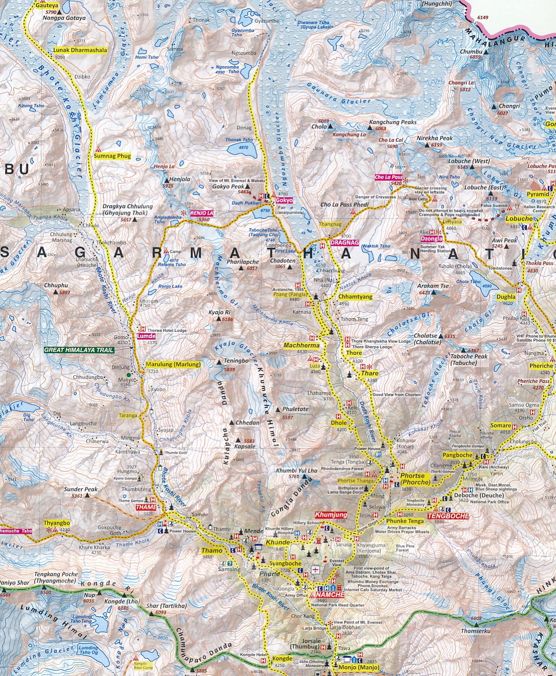 Handige pocket map voor het hele gebied voor de Everest trek naar het Base Camp vanaf zowel Jiri als ook vanaf Phaplu of Lukla. Een beetje grove schaal, maar juist voor het overzicht een ideale kaart. Ook de trekkings in Rolwaling vind je hier op terug.