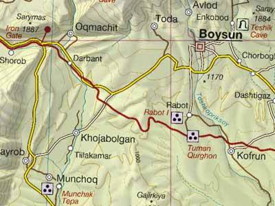 Tourist Map of Kathlon and direct rule districts with adjacent areas of Uzbekistan and Afghanistan