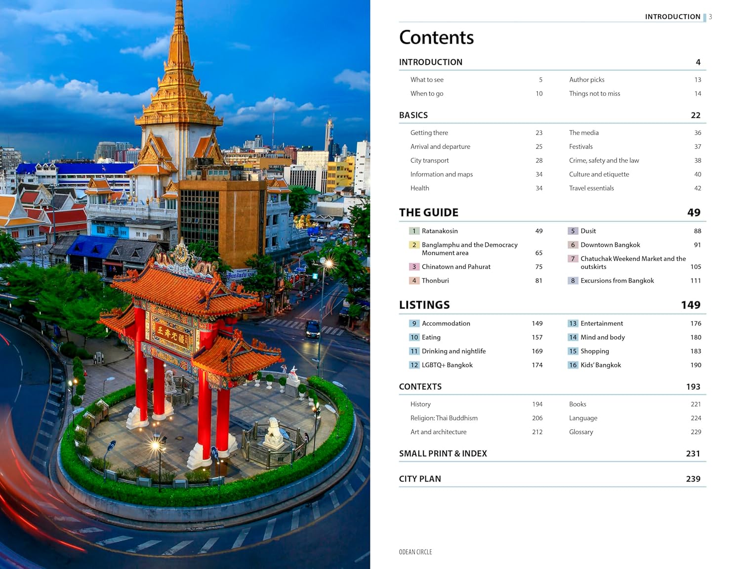 Coverage includes: Ratanakosin, Banglamphu and the Democracy Monument area, Chinatown and Pahurat, Thonburi, Dusit, Downtown Bangkok, Chatuchak Weekend Market and the outskirts, Excursions from Bangkok