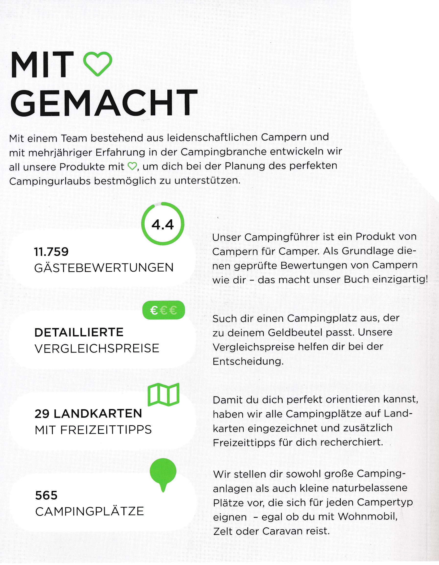 Aardig gidsje, maar je mist wel foto's en de reviews zelf, dus je moet het wel aanvullen met info van Internet. Er wordt niet aangegeven of een camping goed met de caravan te bereiken is.