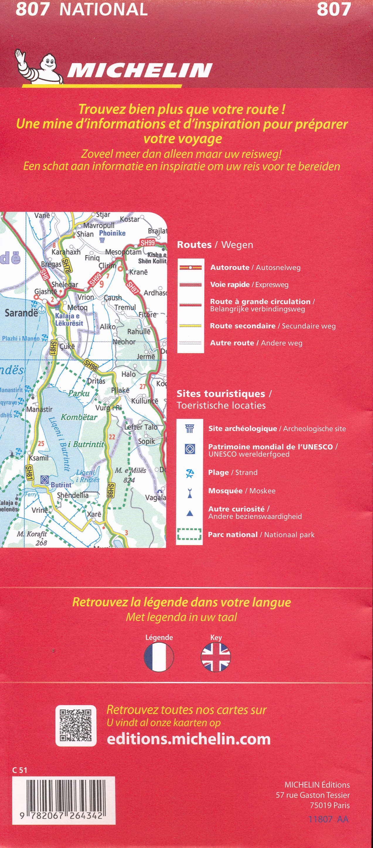Wegenkaart - landkaart 807 Albanië - Albanie | Michelin (9782067264342)