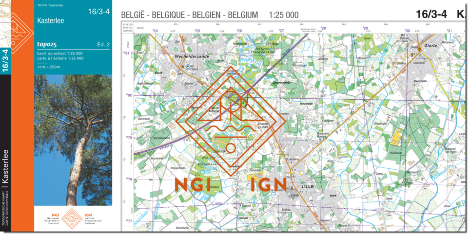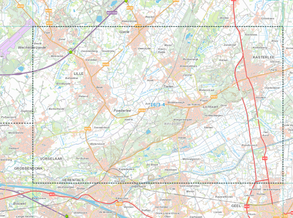 - Wegenkaart - landkaart 16/3-4 Topo25 Kasterlee | NGI - Nationaal Geografisch Instituut