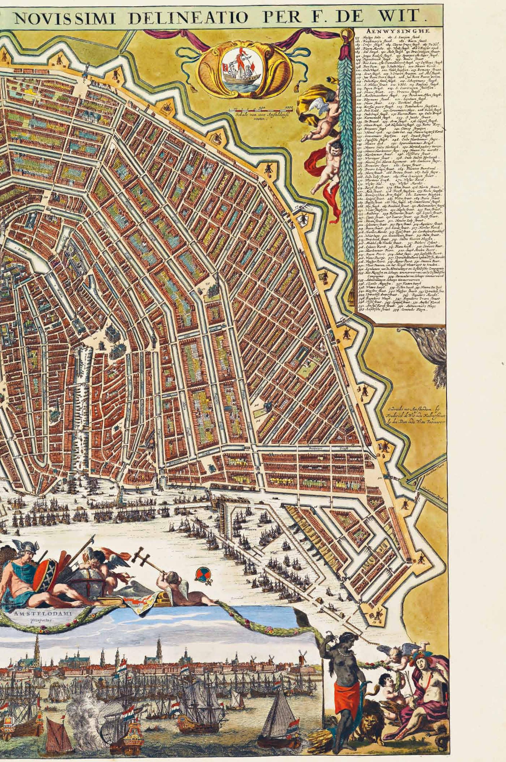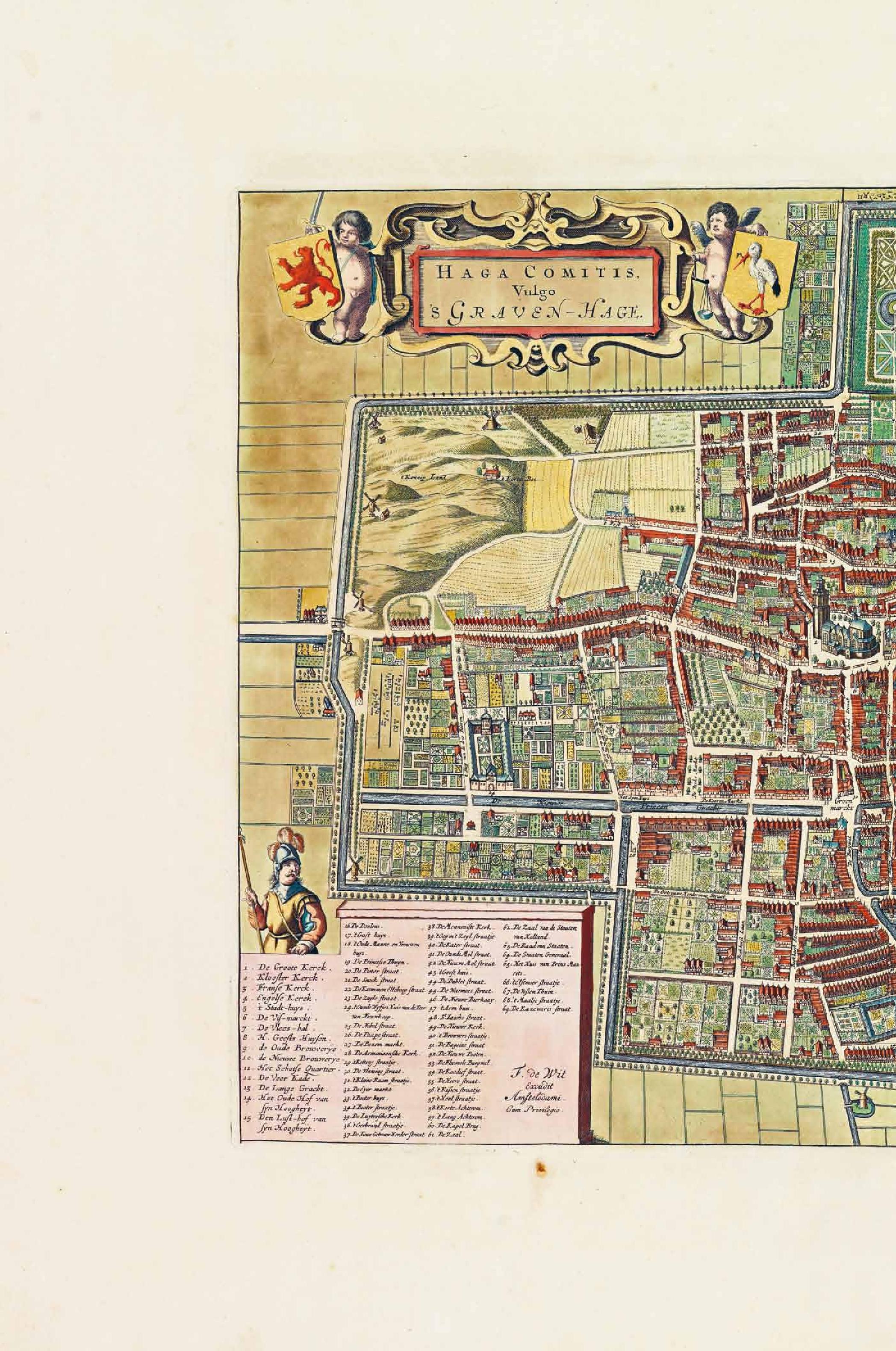 Eind 17de eeuw verscheen bij de Amsterdamse uitgever/cartograaf/graveur Frederick de Wit Theatrum ichnographicum omnium urbium et præcipuorum oppidorum Belgicarum XVII Provinciarum peraccurate delineatarum. (Perfecte aftekeningen der steden van de XVII Nederlandsche Provincien in platte gronden). Het is een zogenaamde stedenatlas, een genre dat erg populair was in de late 16de en 17de eeuw, met plattegronden van belangrijke steden uit die tijd. Dergelijke boeken werden uitgegeven door de grote atlasuitgevers van die dagen, in Nederland door Joan Blaeu, Johannes Janssonius en Frederick de Wit. Zij publiceerden atlassen van grote Europese steden, maar ook van Nederlandse. De Wit was de laatste die het genre uitgaf. Hiervoor gebruikte hij platen zowel van Blaeu als van Janssonius die hij na het opheffen van beide bedrijven gekocht had op veilingen in respectievelijk 1674 en 1694. De Wit gebruikte deze platen niet altijd klakkeloos, maar verbeterde ze: hij zette er de naam van de stad en een schaal op en vulde bepaalde onderdelen aan. Zo laat vergelijking met de platen van zijn voorgangers zien dat het centrum van de vestingstad Groenlo bij Blaeu niet ingetekend was maar bij De Wit wel, of dat De Wit een tafereeltje toevoegde aan de Janssoniusplaat van Utrecht. Soms liet hij ook een geheel nieuwe plaat maken, zoals voor Leiden.