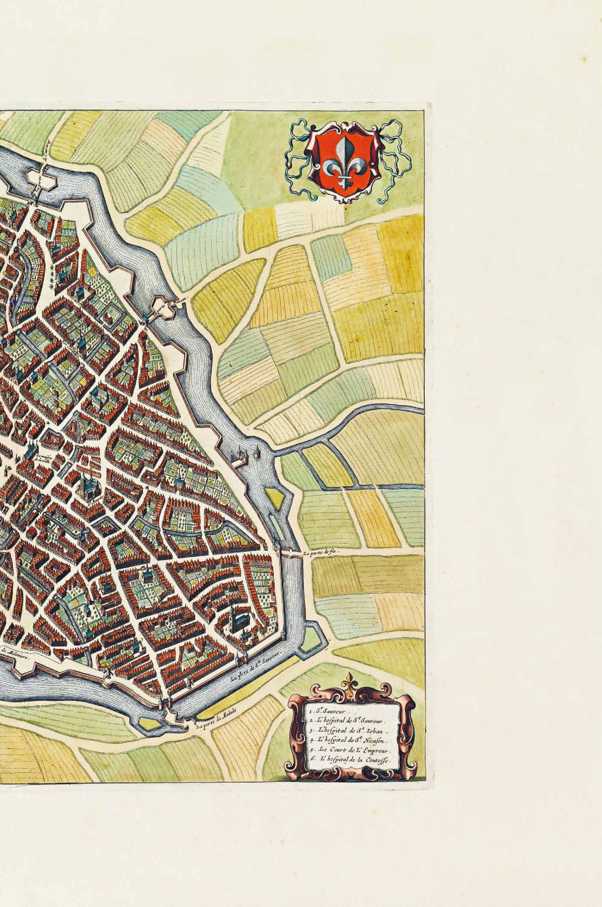 Een historische atlas uit 1698 met 151 stadsplattegronden uit de Noordelijke en Zuidelijke Nederlanden, van Groningen tot Rijsel.