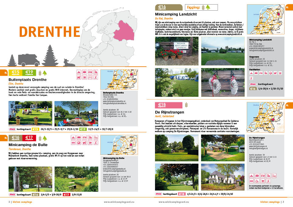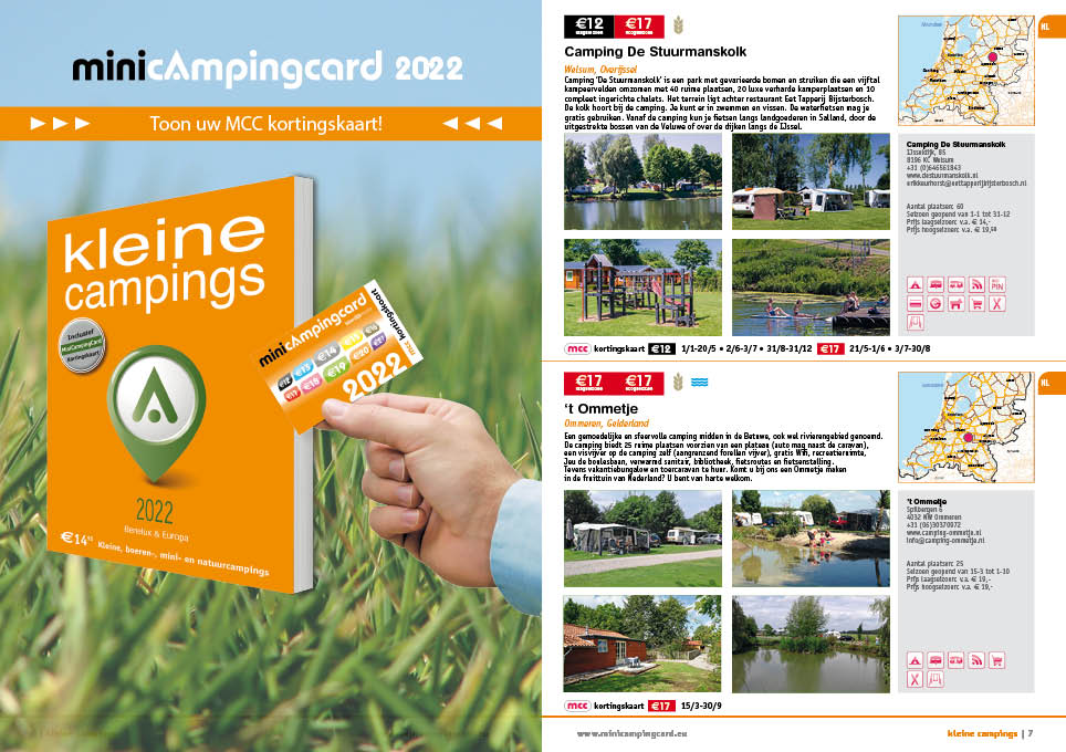 In de Oranje Gids Kleine Campings 2022 staan de mooiste kleine- boeren- mini- en natuurcampings van Nederland en Europa. Door middel van de MinicampingCard, geniet u van kortingen in het laag- en/of hoogseizoen.
