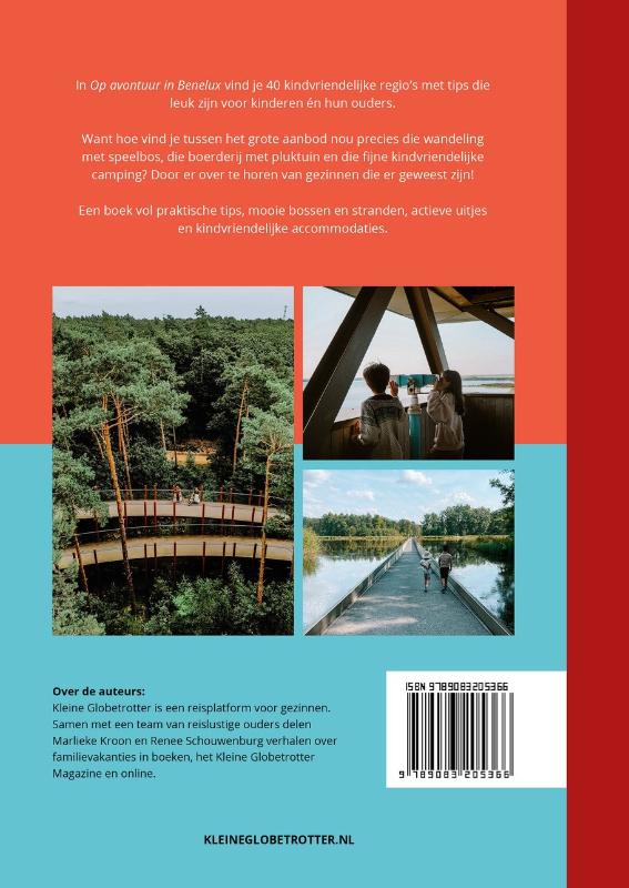 In Op avontuur in Benelux vind je 40 kindvriendelijke regio’s in België, Nederland en Luxemburg met tips die leuk zijn voor kinderen én hun ouders. Want hoe vind je tussen het grote aanbod nou precies die wandeling met speelbos, die boerderij met pluktuin en die fijne kindvriendelijke camping? Door er over te horen van gezinnen die er geweest zijn! Een boek vol praktische tips, mooie bossen en stranden, actieve uitjes en kindvriendelijke accommodaties en campings.