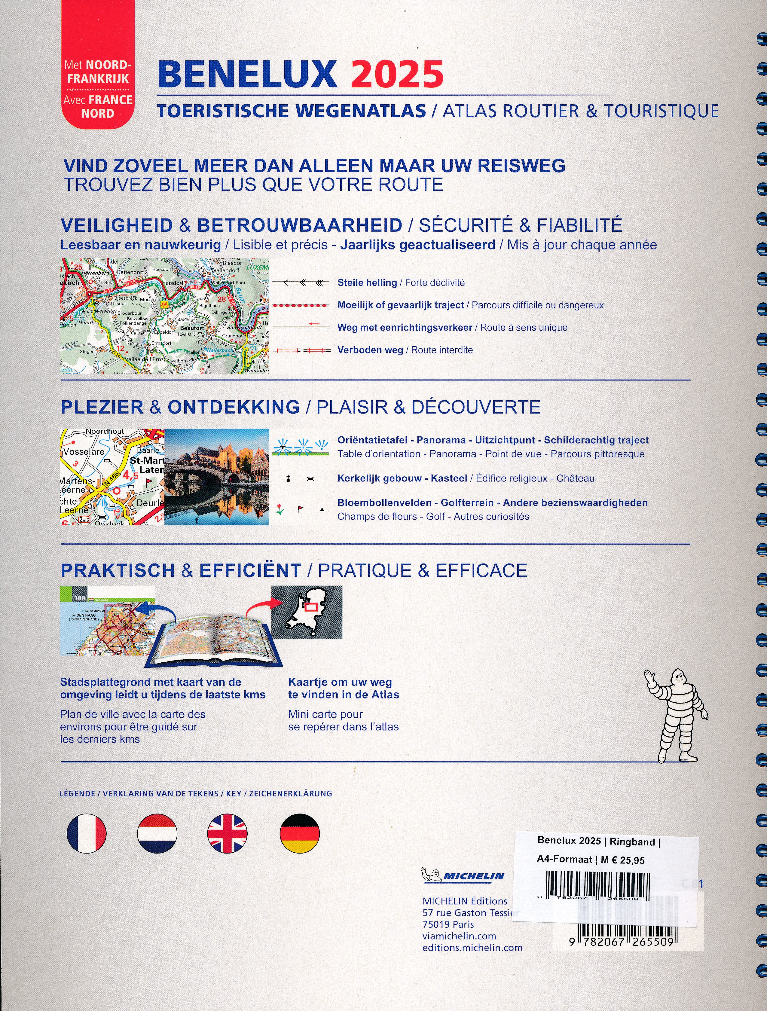 Wegenatlas Benelux 2025 | Ringband | A4-Formaat | Michelin (9782067265509)
