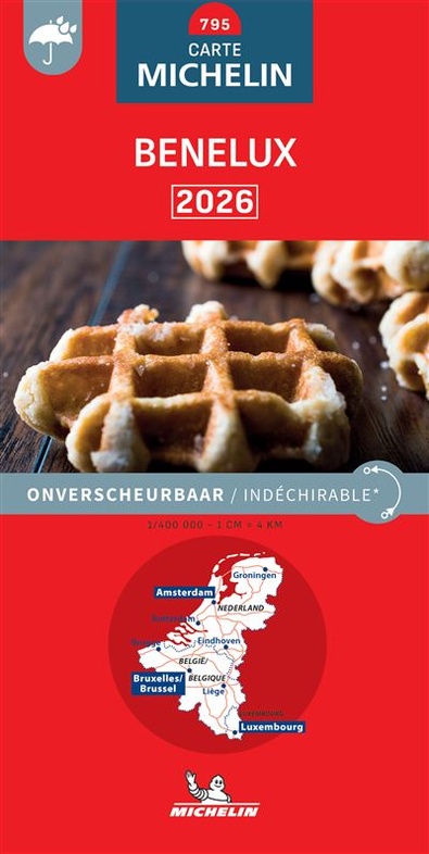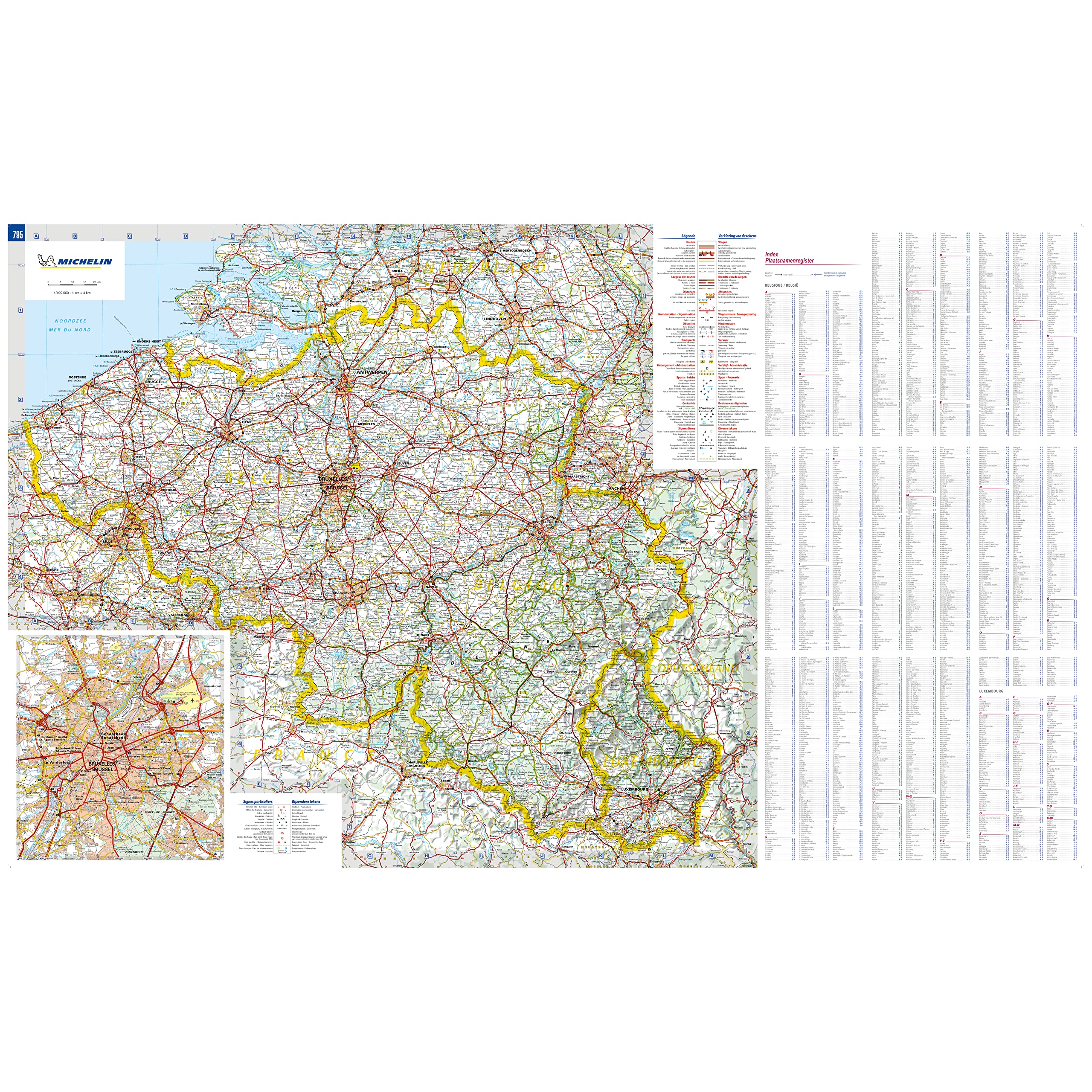 Benelux at 1:400,000 from Michelin, with information on driving regulations in each country, a distance and journey time table, plus enlargements showing in greater detail road access to Amsterdam, Brussels and Luxembourg City. Coverage extends east to include the Ruhr and the Eifel in Germany.