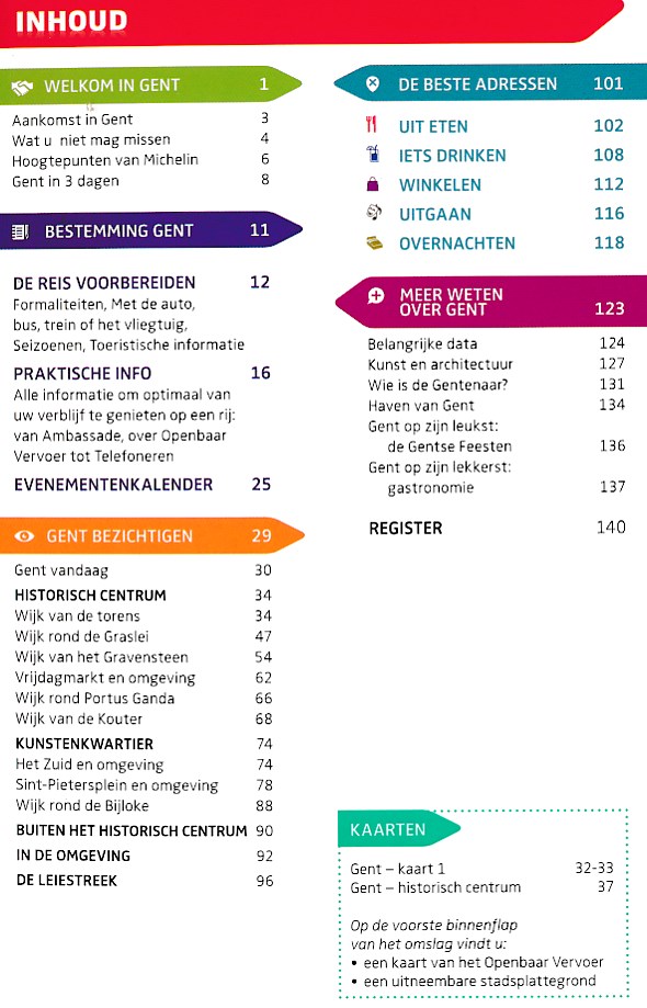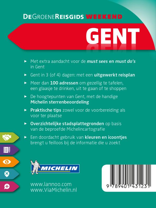 De 3-sterrengids voor een geslaagde citytrip - Met extra aandacht voor de must sees en must do's in Gent - Gent in 3 (of 4) dagen: met een uitgewerkt reisplan - Meer dan 100 adressen om gezellig te tafelen, een glaasje te drinken, uit te gaan of te shoppen - De hoogtepunten van Gent, met de handige Michelin sterrenbeoordeling - Praktische tips zowel voor de voorbereiding als voor ter plaatse - Overzichtelijke stadsplattegronden op basis van de beproefde Michelincartografie - Een doordacht gebruik van kleuren en icoontjes brengt u feilloos bij de informatie die u zoekt.