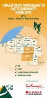 Wandelkaart 5 GR Namen, Maas en Franse Ardennen | Alta ViaUit de reeks 'Langeafstands wandelkaarten' in België. Een uitgave van Alta Via, in samenwerking met Grote Routepaden. De kaarten omvatten alle GR's, Streek-GR's, Compostela Via-routes, GTA en Eisleck Trail. …
