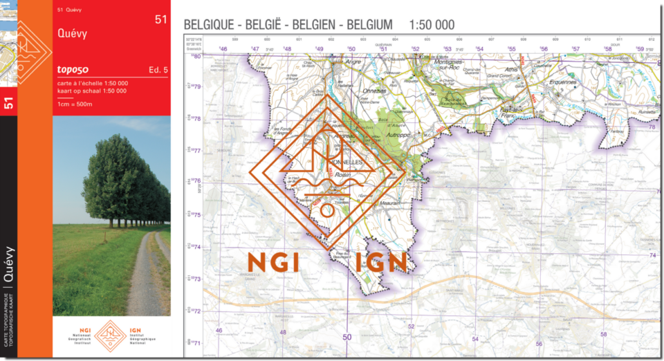 Topografische kaart - Wandelkaart 51 Topo50 Quévy | NGI - Nationaal Geografisch Instituut (9789462356450)
