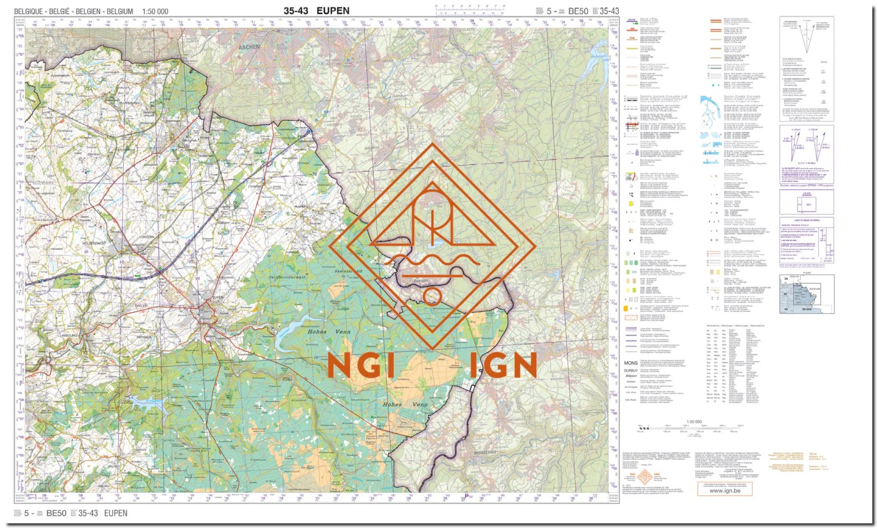 - Topografische kaart - Wandelkaart 43-35 Topo50 Eupen | NGI - Nationaal Geografisch Instituut