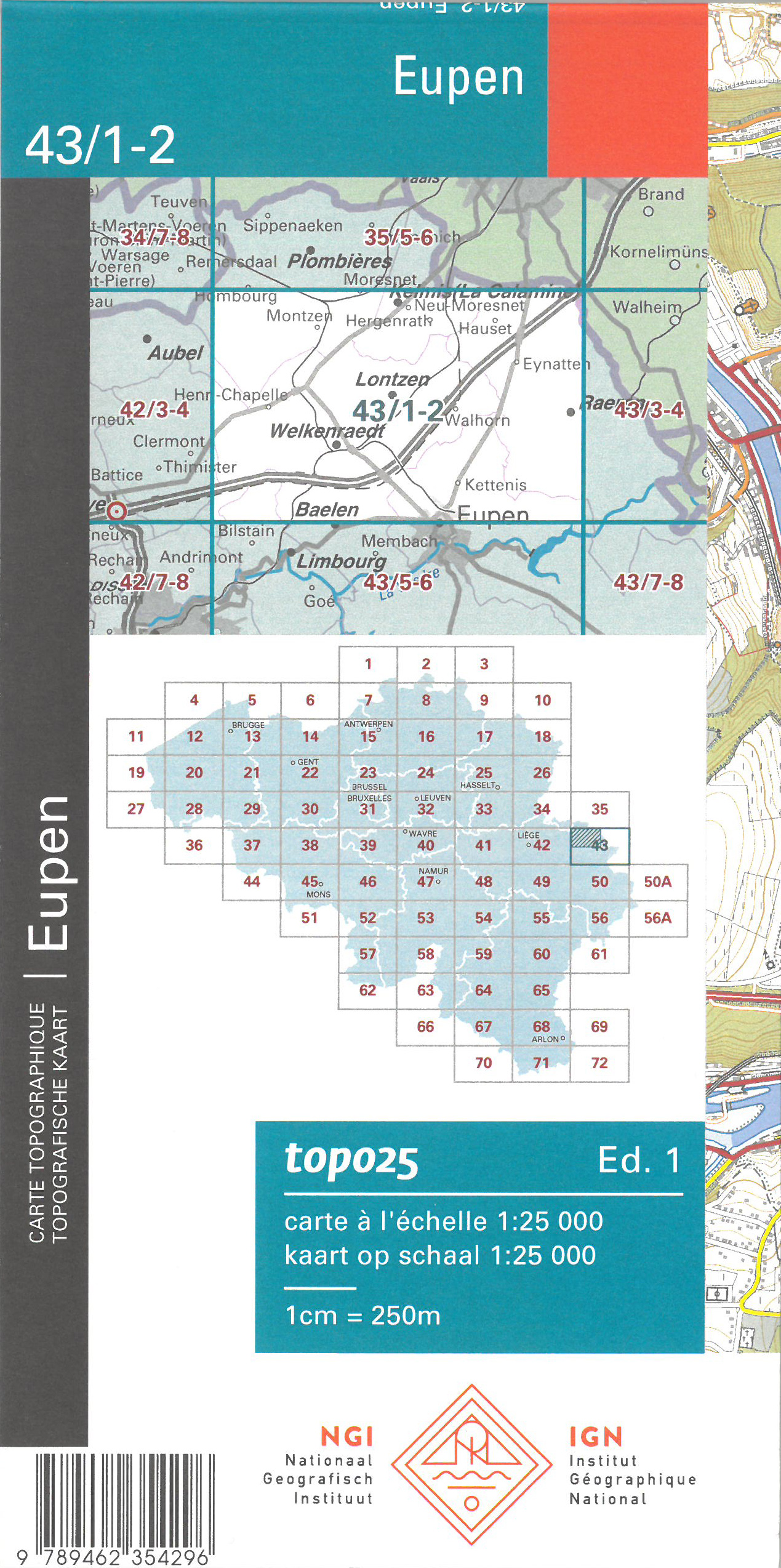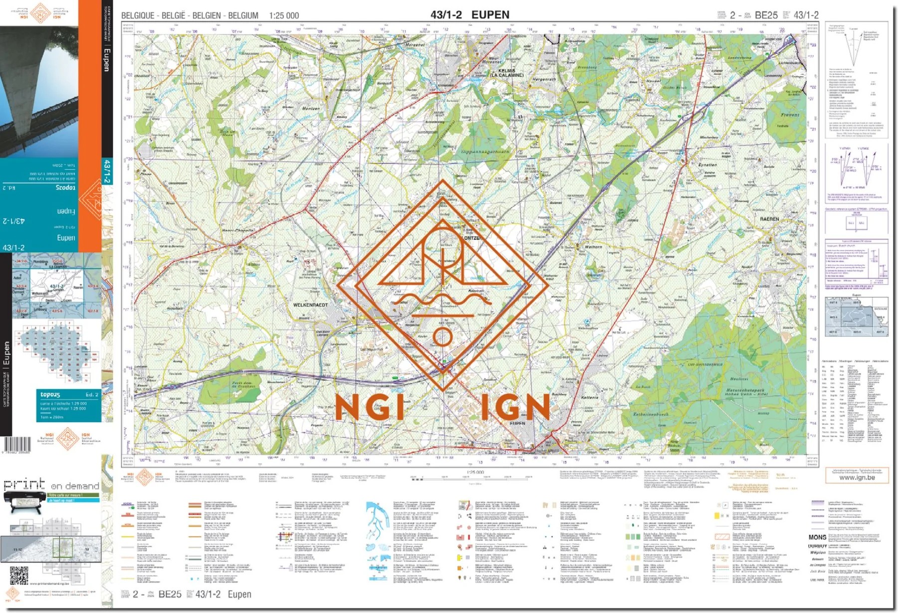 - Topografische kaart - Wandelkaart 43/1-2 Topo25 Eupen | NGI - Nationaal Geografisch Instituut