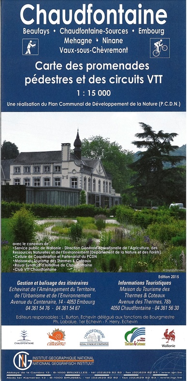 wandelroutes, GR-routes, RAVEL-routes, Rando Vélo-routes, mountainbike routes, toeristische faciliteiten, kaart en/of info op voor- en achterkant