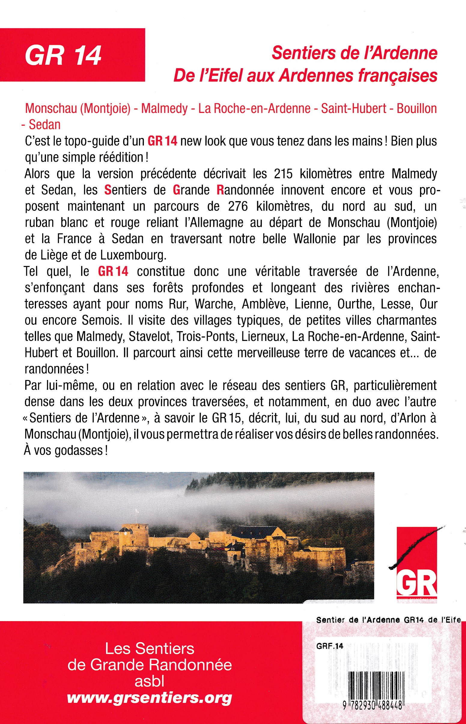 GR 14 neemt je mee door uitgestrekte bossen; loopt langs betoverende rivieren zoals de Warche, Amblève, Liene, Ourthe, Lesse en de Semois en doet typische dorpjes en charmante kleine steden aan zoals Stavelot, Trois-Ponts, Lierneux, La Roche, Saint-Hubert enBouillon.