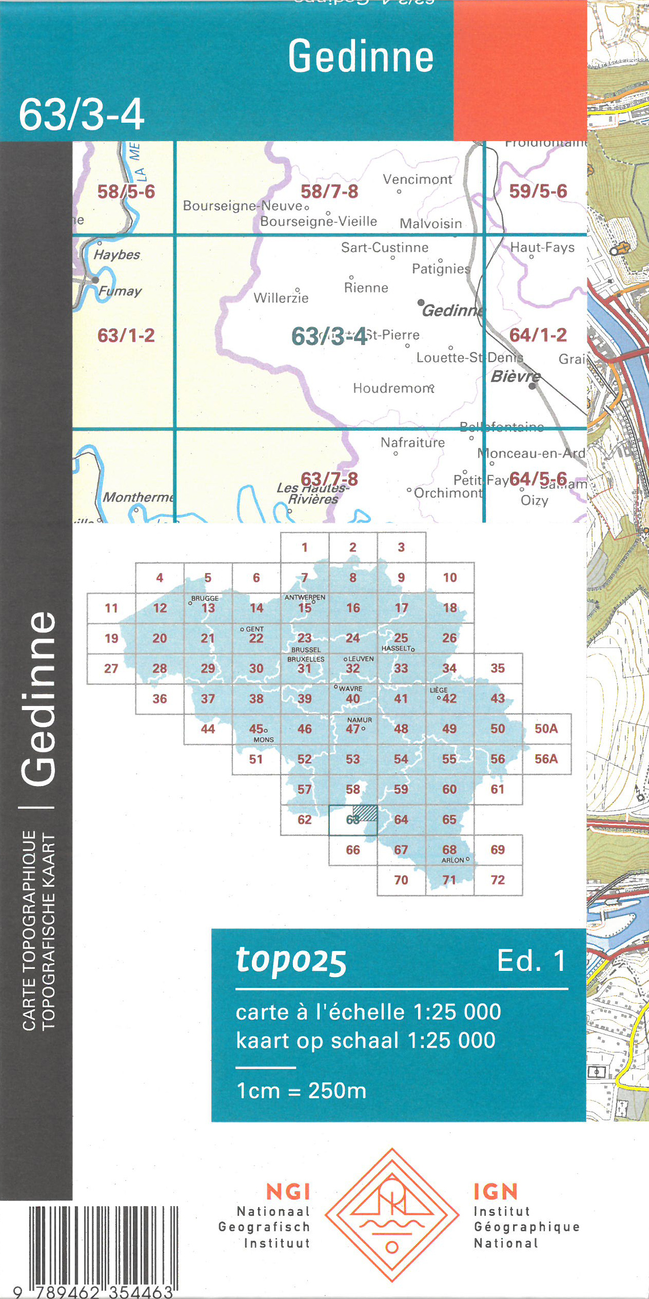 - Topografische kaart - Wandelkaart 63/3-4 Topo25 Gedinne | NGI - Nationaal Geografisch Instituut