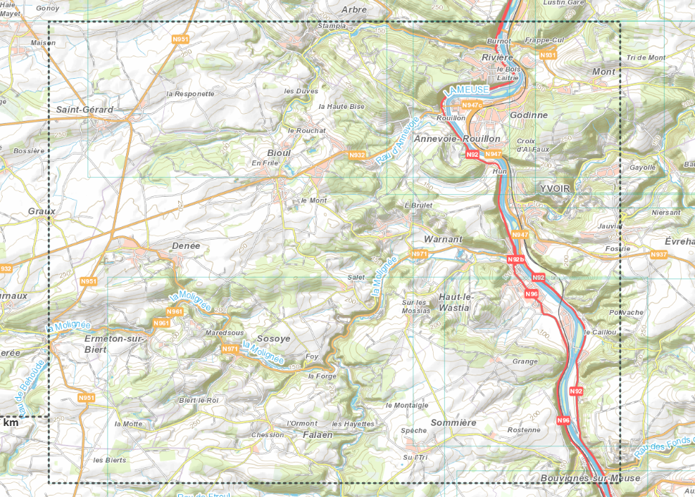 Anhée, Hun, Rouillon, Annevoie, Bioul, Maredsous, Maredret, sosoye, Salet, Warnant, Haut-le-Wastia.