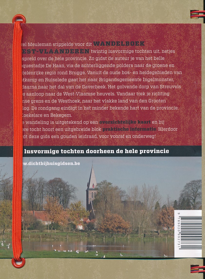 Karel Meuleman stippelde voor dit WANDELBOEK WEST-VLAANDEREN twintig lusvormige tochten uit, netjes verspreid over de hele provincie. Zo gidst de auteur je van het belle epoquestadje De Haan, via de achterliggende polders naar de groene en kastelenrijke regio rond Brugge. Vanuit de oude bos- en heidegebieden van Oostkamp en Ruiselede gaat het naar Brigandsgemeente Ingelmunster, en daarna naar het dal van de Gaverbeek. Het golvende dorp van Streuvels is de aanloop naar de West-Vlaamse heuvels. Vandaar trek je richting Franse grens en de Westhoek, naar het vlakke land van den Grooten Oorlog. De rondgang eindigt in het minder bekende hart van de provincie: in Koekelare en Bekegem. Elke wandeling is uitgetekend op een overzichtelijke kaart en bij iedere tocht hoort een uitgebreide blok praktische informatie. Hierdoor wordt deze gids een gouden leidraad, voor vooraf en onderweg! Voor een overzicht van de wandelingen in deze gids: raadpleeg www.dichtbijhuisgidsen.be.