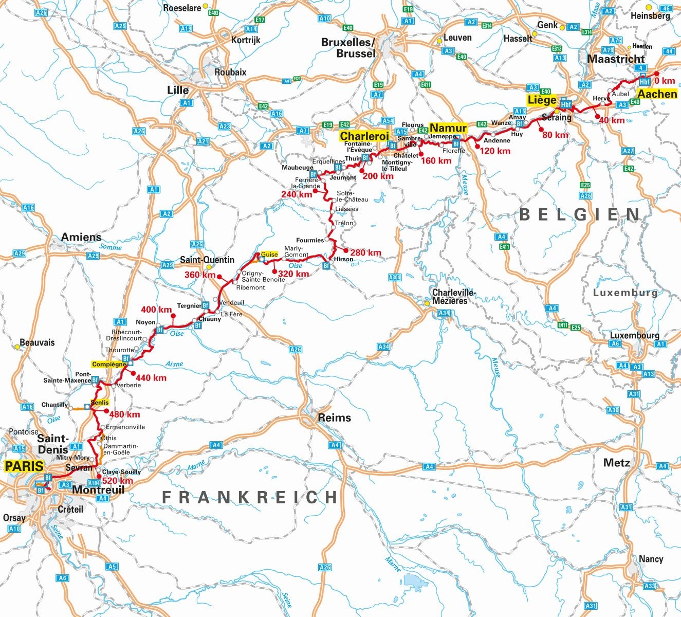 Handige fietsgids van de route tussen Aken en Parijs over de Eurovelo 3. Alles geplastificeerd, goede kaarten, prima beschrijvingen en veel informatie. In dwarsuitvoering met ringband. Dit is zoals een fietsgids moet zijn, echt over nagedacht!