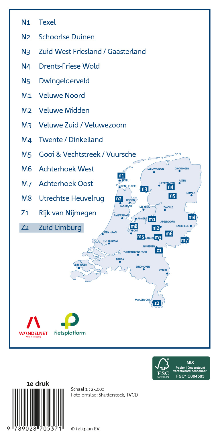 De Falk Toeristische Regiokaart Zuid-Limburg incl. Voerstreek is ideaal om de omgeving optimaal te ontdekken! Op de Regiokaart staan alle wandelknooppunten en fietsknooppunten, Lange-afstandswandelpaden (LAW's) en Streekpaden. Ook andere toeristisch belangrijke punten staan duidelijk aangegeven: VVV’s, treinstations, veerponten en veel meer. Op de achterzijde staat informatie over de mooiste gebieden en plaatsen. Ook staan hier deelkaarten van aansluitende gebieden en detailkaarten. Prettig leesbaar en zeer overzichtelijk door de heldere cartografie op schaal 1:25.000. Daarmee is dit de ideale wandel- en fietskaart voor een kort of lang bezoek aan de regio. De Falk Regiokaart is o.a. voorzien van: • Fietsknooppunten & Fietspaden • Wandelknooppunten & Wandelpaden • Alle Lange AfstandWandelpaden (LAW) & Streekpaden • Wandelroutes & Mountainbikeroutes (MTB) • Toeristisch Overstap Punten (TOP) & Parkeerplaatsen • Bezoekerscentra & VVV’s • Treinstations, veerponten • Horeca locaties, Bezienswaardigheden enzovoorts