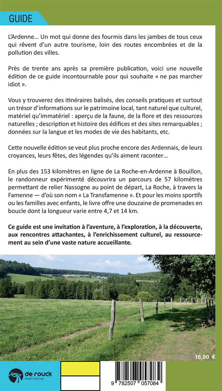 Lente 1992: eerste editie van La Transardennaise. Bijna dertig jaar later, met meer dan 15.000 gedistribueerde boeken - in het Frans en Nederlands - is hier een nieuwe editie van deze essentiële gids voor degenen die "niet idioot willen lopen". Routes, bovendien goed aangegeven, praktisch advies en vooral een schat aan informatie over het lokale erfgoed, zowel natuurlijk als cultureel, tastbaar en immaterieel: overzicht van fauna, flora en hulpbronnen; beschrijving en geschiedenis van opmerkelijke gebouwen of locaties; gegevens over de taal en levensstijl van de inwoners, enz. Deze nieuwe editie is bedoeld om nog dichter bij de ontdekking van de Ardennen te staan, door meer te focussen op hun overtuigingen, hun festivals en legendes. En voor de minder atletische of gezinnen met kinderen, biedt het boek een tiental luswandelingen waarvan de lengte varieert tussen 4,7 en 14 km zonder de Transfamenne te vergeten, of 57 km wandelen.