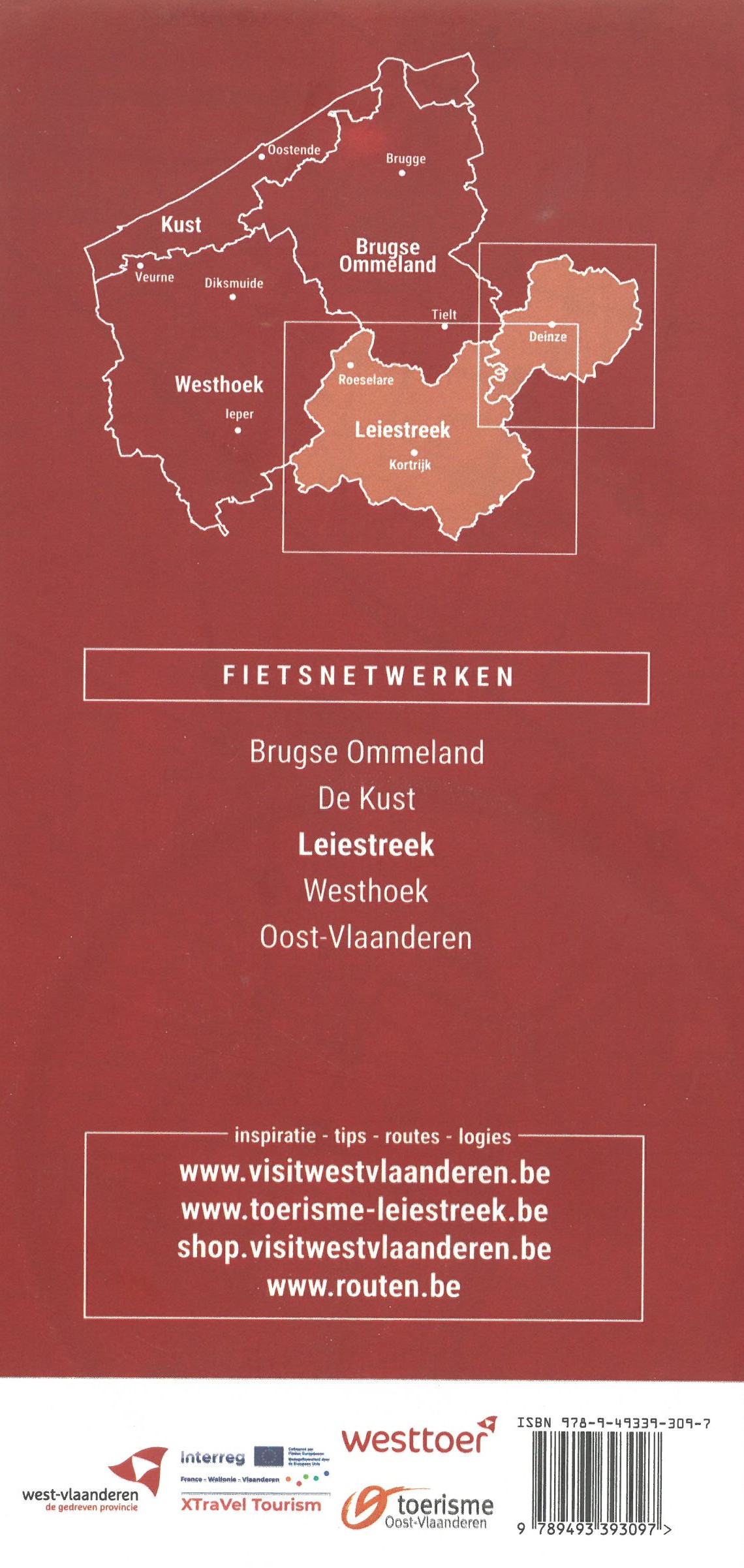 Fietskaart - Fietsknooppuntenkaart Fietsnetwerk Leiestreek | Westtour (9789493393097)