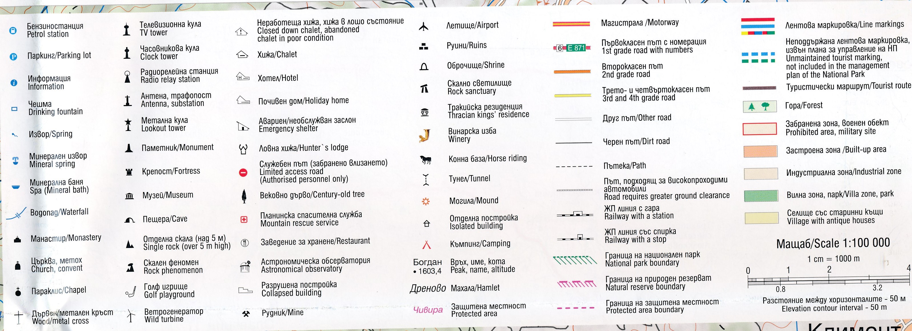 Gedetailleerde kaart met hoogtelijnen en wandelroutes. Tevens aanduiding van campings, hotels, eerste hulpposten, etc. Alle tekst in het Latijnse en Cyrillische schrift. Wandelpaden gemarkeerd, hutten zijn aangegeven.