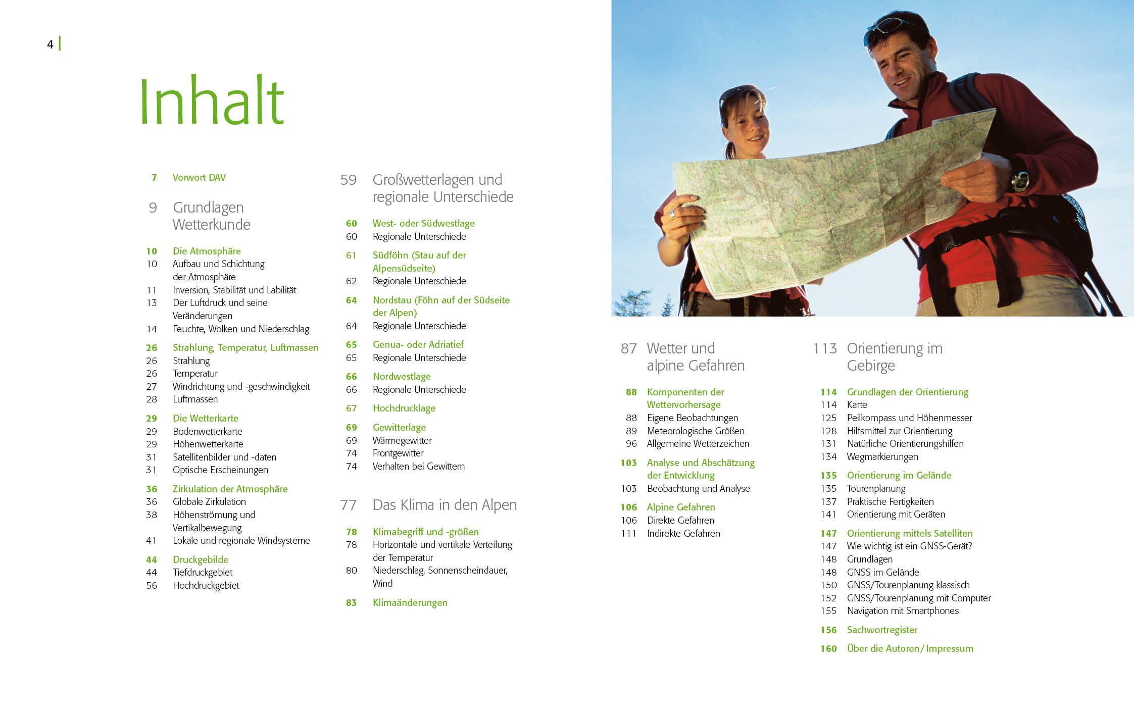 Theoretische Grundlagen der Wetterkunde, Darstellung wichtiger Wetterlagen der Alpen und ihre Auswirkungen, Grundzüge des Klimas in den Alpen, Klimaänderung, Erarbeitung eigener Vorhersagen, alpine Gefahren, Grundlagen der Orientierung, Orientierung im Gelände. Im neu aufgelegten Alpin-Lehrplan 6 werden umfassend erläutert. Die Leser erhalten mit dem Alpin-Lehrplan 6 einen umfassenden Leitfaden an die Hand - ein Nachschlagewerk sowohl für Selbstlerner als auch für Teilnehmer von Kursen. Rund 300 farbige Abbildungen und Grafiken tragen dazu bei, die Inhalte anschaulich zu vermitteln. Der offizielle Alpin-Lehrplan des Deutschen Alpenvereins wendet sich nicht nur an Ausbilder, sondern vor allem an Bergsportler selbst. Er ist nach neuesten didaktischen Erkenntnissen erarbeitet und besonders praxisorientiert aufgebaut. In anschaulicher Aufmachung vermittelt er – neben dem speziellen Know-how zur jeweiligen Disziplin – die Vielseitigkeit und den Erlebniswert des Alpinismus.Reviews