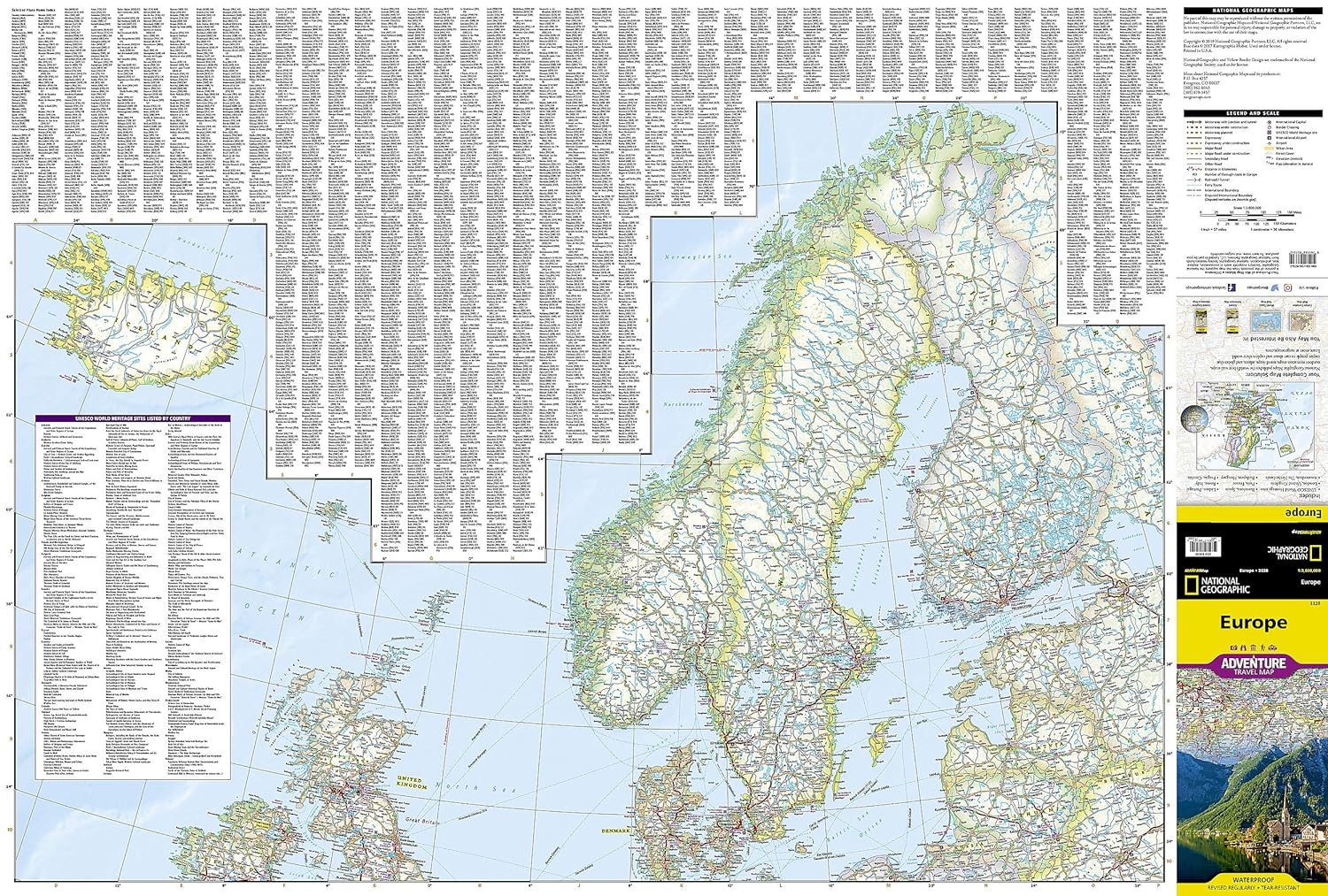 National Geographic's Europe Adventure Map provides global travelers with the perfect combination of function and perspective. Designed to meet the needs of adventure travelers with its detailed, accurate information, this map includes the location of cities and towns with a user-friendly index and a clearly marked road network complete with distances and designations for roads/motorways, plus secondary routes for those seeking to explore off the beaten path.Europe is home to hundreds of UNESCO World Heritage Sites with both cultural and natural significance. Each of these sites is shown on the map and also listed in a handy index to help you quickly find your next voyage into the historic past.