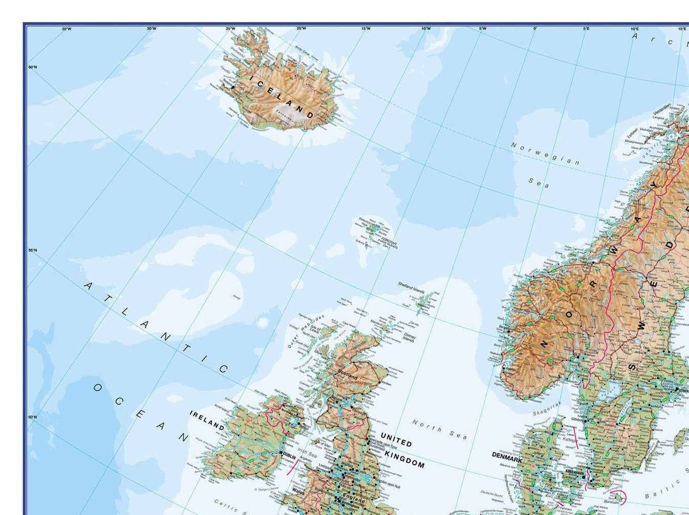 Wandkaart Europa Natuurkundig, 135 x 98 cm | Maps International (9781910378113)