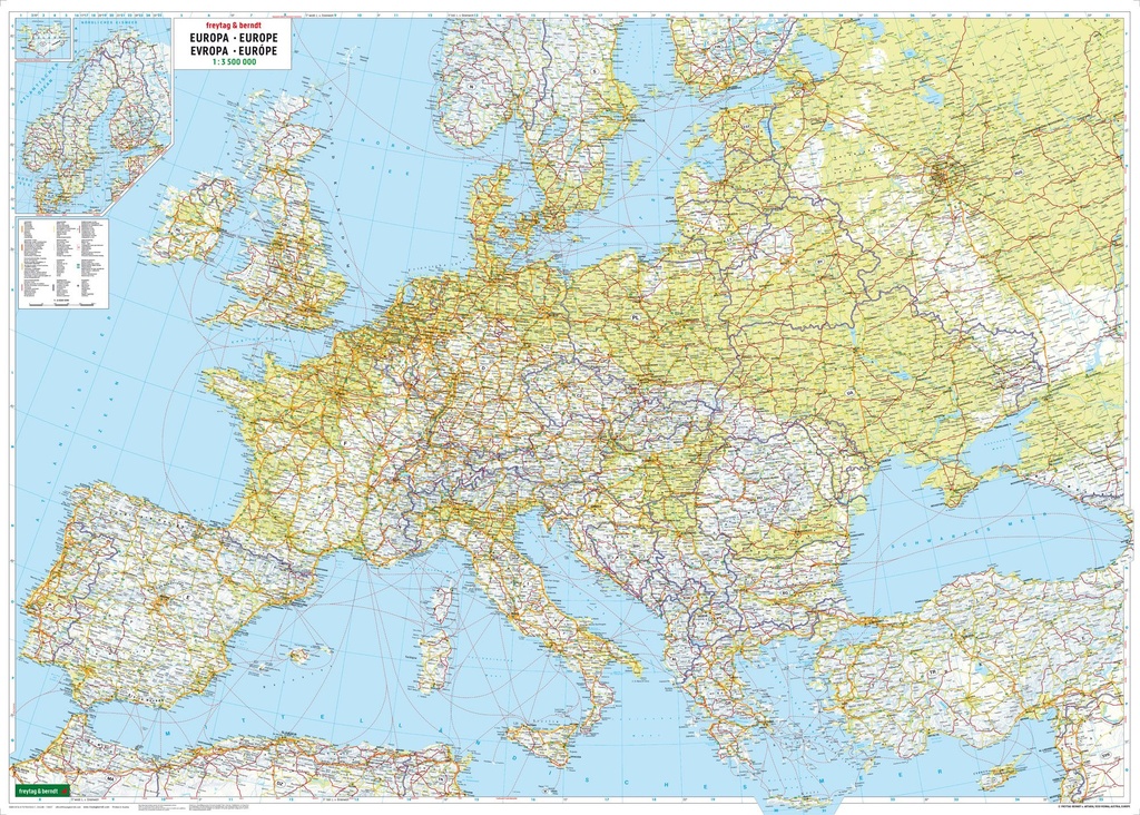 Wandkaart Europa fysisch | 126 x 89 cm | Freytag & Berndt (9783707903621)