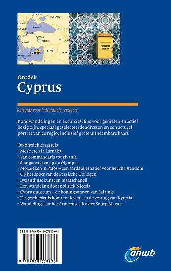 De reisgids Cyprus bevat een overzicht van handige internetsites, informatie over winkelen, uitgaan, overnachten, festivals en evenementen, plattegronden, rondwandelingen en excursies. De ANWB reisgids Ontdek Cyprus neemt u o.a. mee op ontdekkingsreis door dit gebied aan de hand van 10 hoogtepunten.